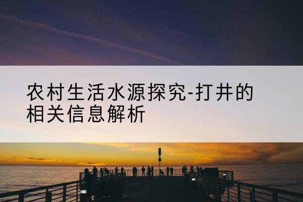 在我国农村地区,叙永打井是获取地下水源的重要方式。一口井的建设,不仅关乎农民的日常生活,更是农业生产的基础保障。本文将围绕叙永农村打井的相关信息进行探讨,以期提高大家对这一传统技艺的认识。
