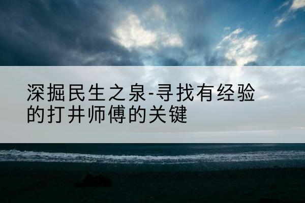 寻找有经验的稻城打井师傅,不仅仅是找一人来解决问题,更是为家庭与生活带来长久的便利和保障。在进行选择时,综合考虑上述方面,将有助于找到真正符合需求的专业师傅,为安全、稳定的水源提供坚实基础。